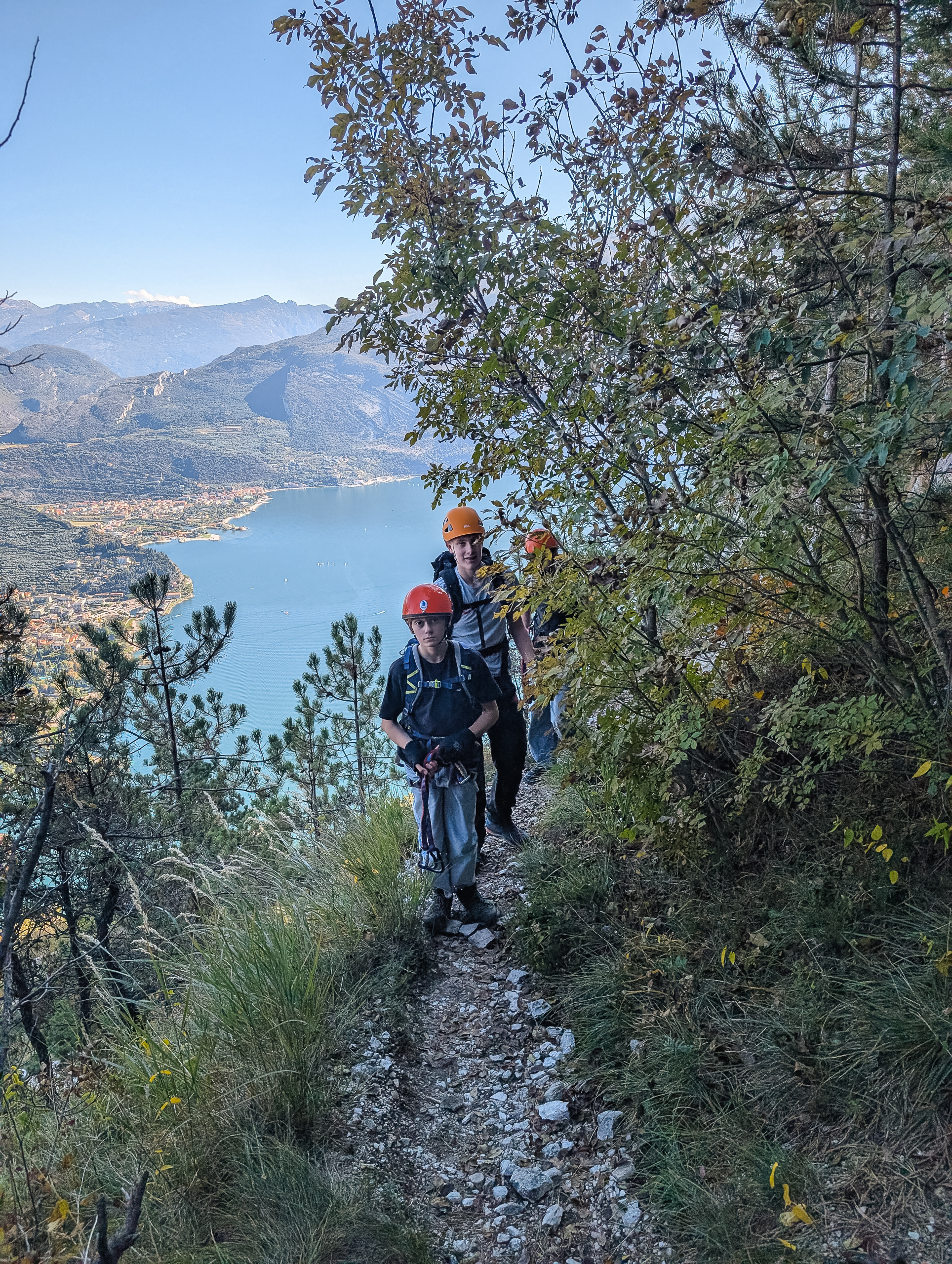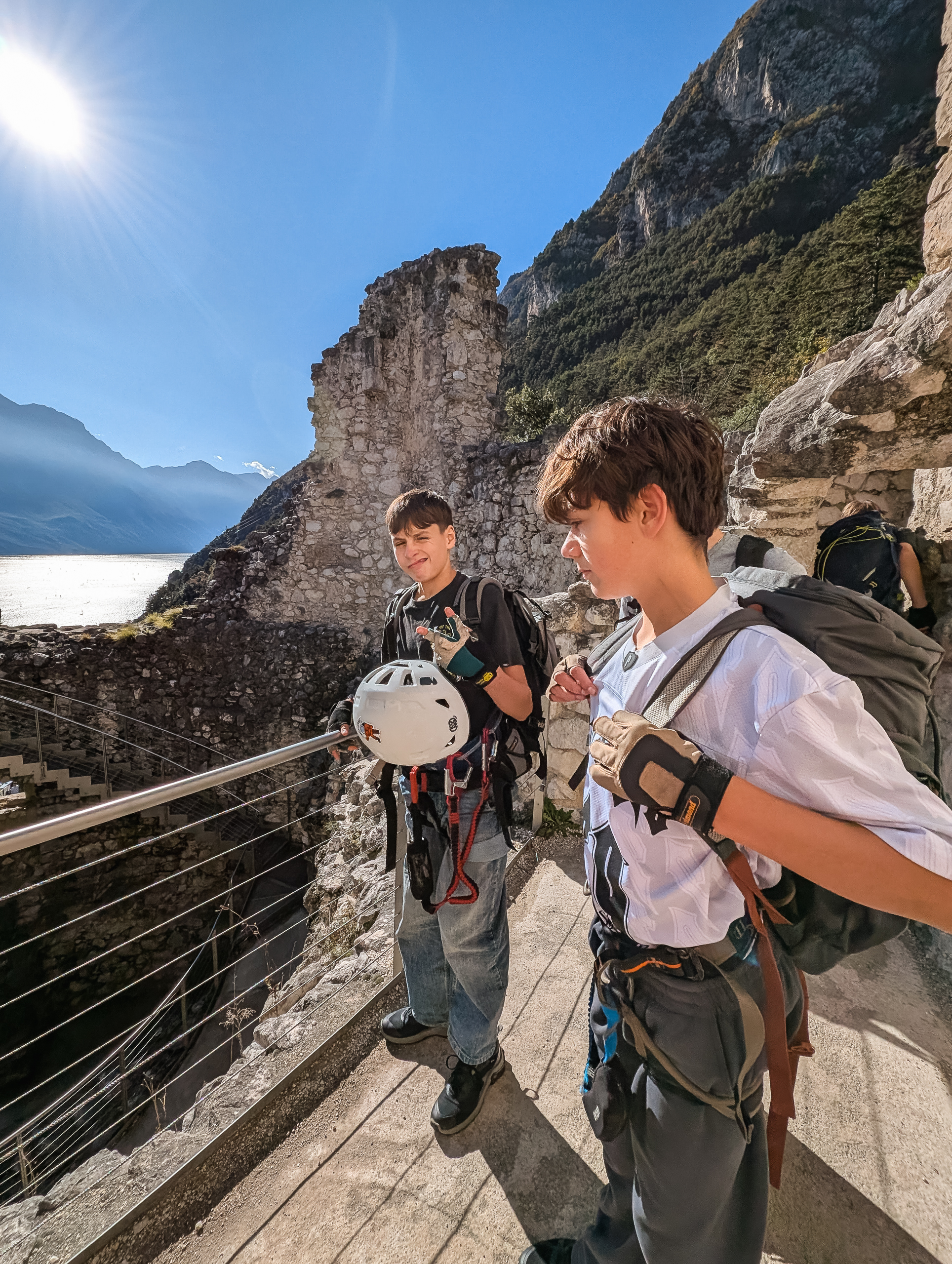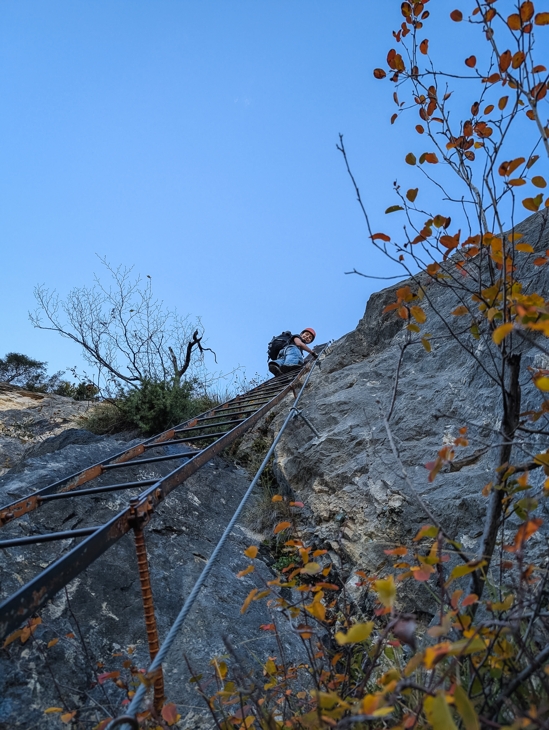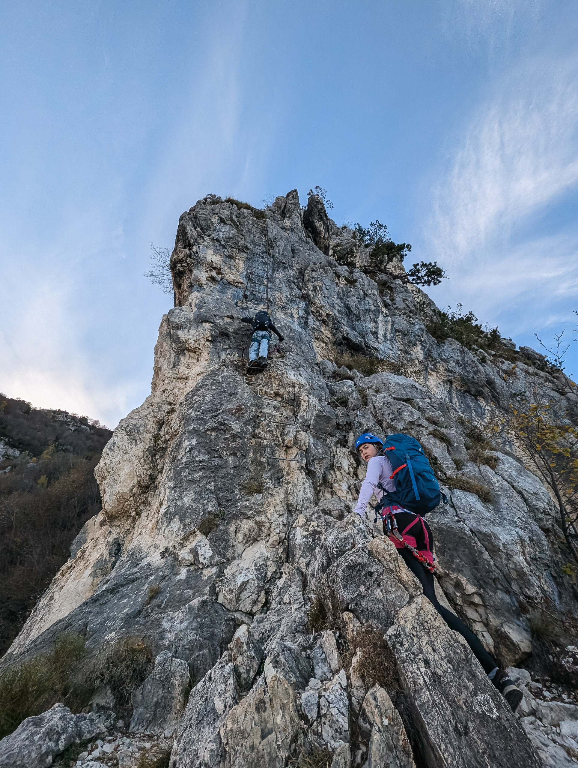 Weil das Wetter auf der Alpennordseite überall schlecht ist, verlegen wir unser Tourenziel spontan zum Gardasee. Dort biwakierten wir in den Bergen, gehen Klettersteige, essen Pizza und feiern Geburtstag. Highlight der Tour ist der Klettersteig „Via dell‘Amicizia“ auf die Cima SAT mit seinen vielen langen und ausgesetzten Leitern und Blick hinunter auf den See.